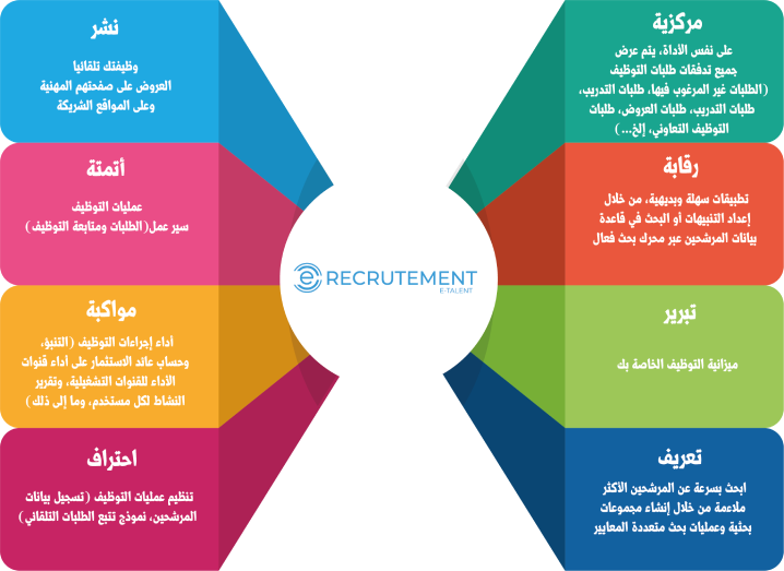 E-recrutement هو منصة تعتمد على الويب بنسبة 100% لإدارة التوظيف الذاتي.